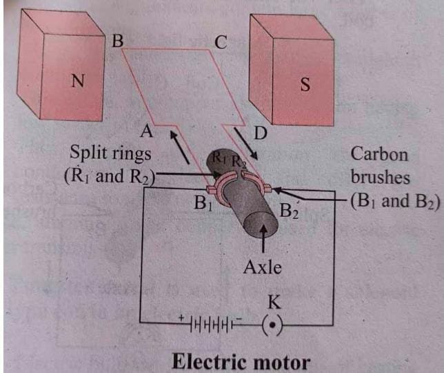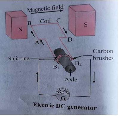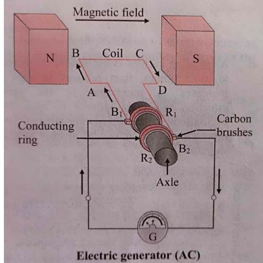 When the axle is rotated with the help of a machine from outside, the coil ABCD starts rotating.
