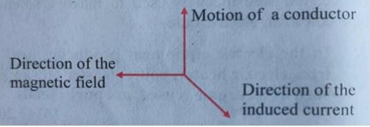 Stretch the thumb, index finger and middle finger of the right hand so that they are perpendicular to each other. If the index finger indicates the direction of magnetic field and the thumb shows the direction of motion of the conductor, then the middle finger will show the direction of induced current.